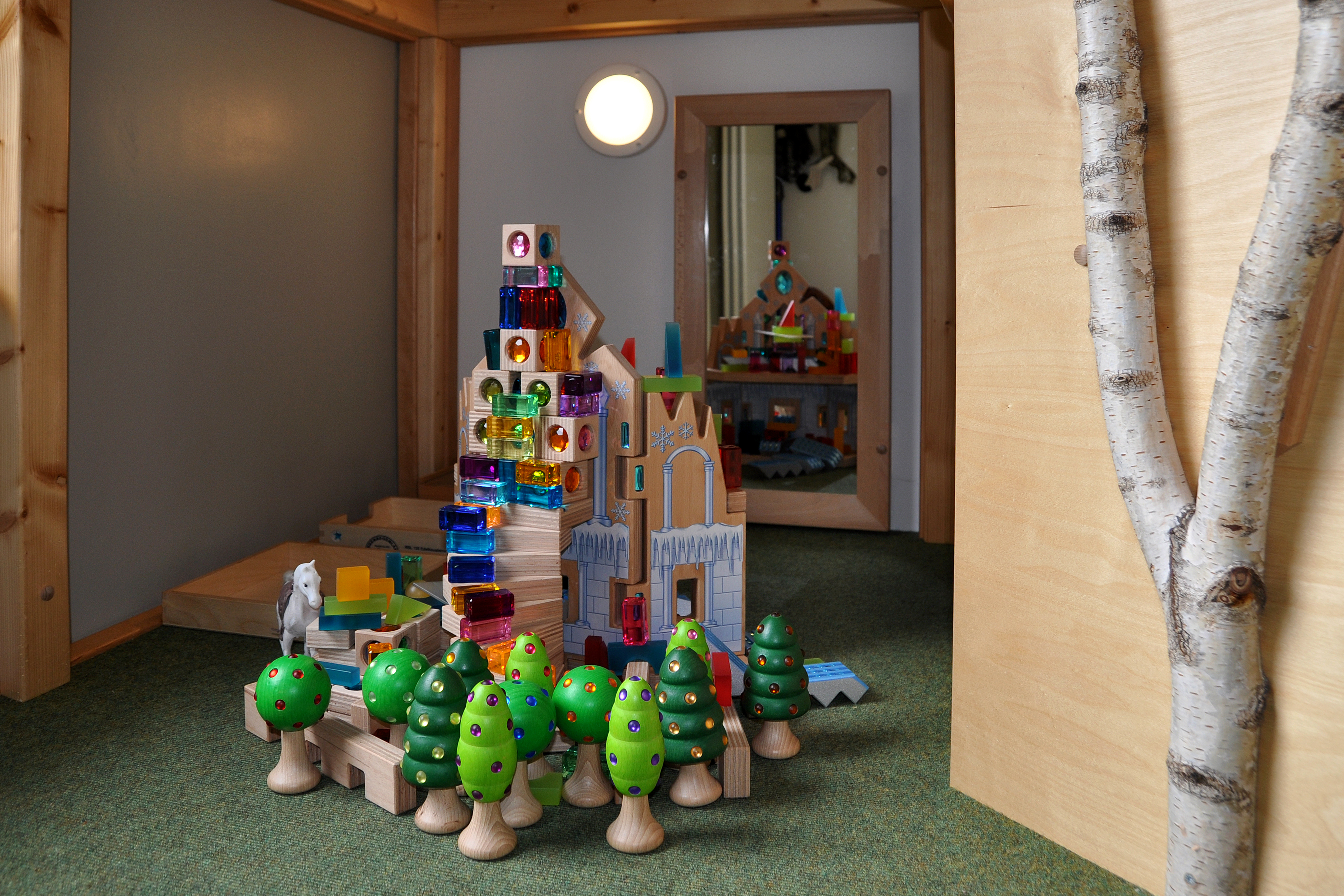 Die Gruppe besteht aus Krippen - und Elementarkindern zwischen 2,5 und 6 Jahren und befindet sich unter dem Dach. Hier stehen Brettspiele und Puzzle ebenso auf dem Plan, wie gemeinschaftliches Basteln, experimentieren und gestalten. Dazu kommen noch Tanz, Bewegung, das Erzählen von fantsievollen Geschichten und tägliches Vorlesen. Außerdem findet einmal wöchentlich gruppenübergreifend die Vorschularbeit statt.